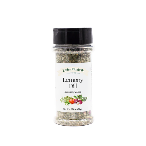 Lesley Elizabeth Lemony Dill Seasoning & Rub is a zesty blend of bright lemon and aromatic dill, perfect for fish, chicken, and veggies. Enhance your dishes with a refreshing, tangy flavor. Use it as a rub, seasoning, or mix with olive oil for marinades and dressings. Ideal for grilling, roasting, or baking, this versatile seasoning brings a fresh burst of flavor to every meal.