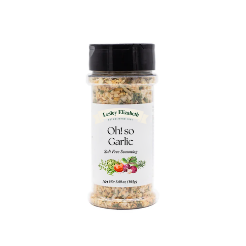 For true garlic lovers, Lesley Elizabeth’s Oh! So Garlic! is a kitchen essential. Bursting with robust garlic flavor and perfectly balanced with savory herbs and spices, this all-purpose seasoning adds rich, mouthwatering depth to everything from roasted meats and vegetables to pasta, sauces, and dips. Sprinkle generously and savor the bold flavor in every bite.