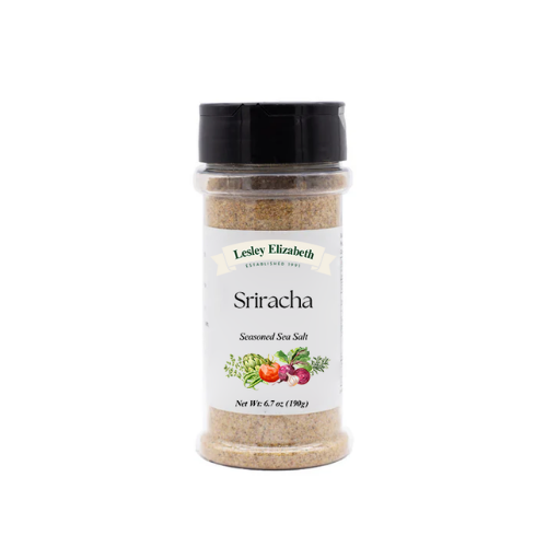 Turn up the heat with Lesley Elizabeth’s Sriracha Seasoned Sea Salt, a bold blend of garlic, onion, cayenne, and jalapeno that delivers fiery Sriracha flavor in every sprinkle. Perfect for baked potatoes, popcorn, or as a vibrant cocktail rim salt, this seasoned sea salt is a flavorful upgrade from your everyday salt and pepper. A must-have for heat seekers and adventurous cooks alike.
